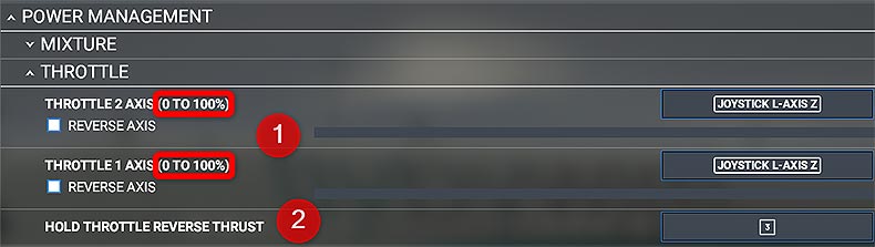 • The throttle in the cockpit should move to IDLE or FULL REVERSE when you set your controller to the lowest possible setting.