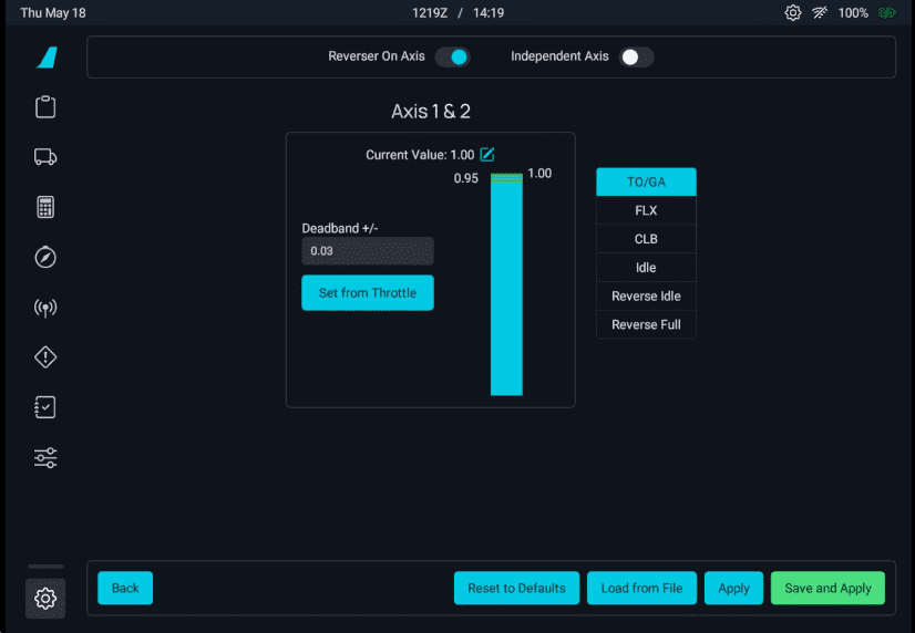 Set Independent Axis to ON if you have two throttle levers. If you only have one throttle lever, set it to OFF.