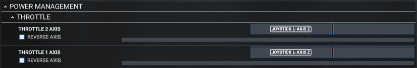 Alternatively, you can use TOGGLE THROTTLE REVERSE THRUST to use a button or key to activate reverse thrust. While this is active, you can push the throttle forward to increase reverse thrust. To deactivate reverse thrust, you need to press the mapped key/button again.