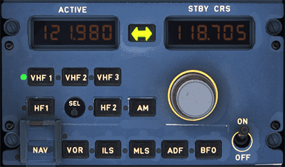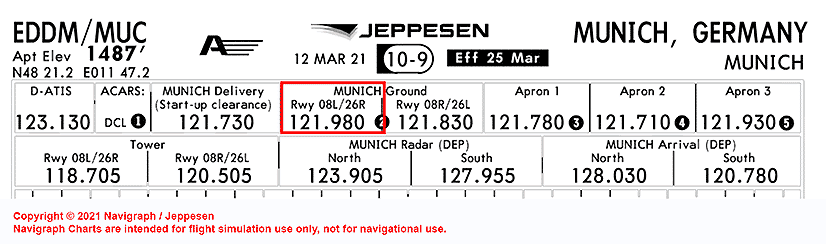 Set your radio frequency to the one assigned by ATC or the airport charts.