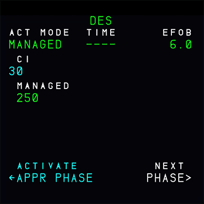 The aircraft is on approach shortly before intercepting the ILS and is still in phase and state DES as per previous chapters.