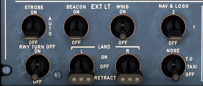 Note: These two lights, attached to the nose gear strut, go off automatically when the landing gear is retracted.