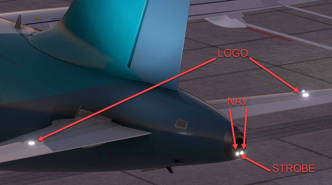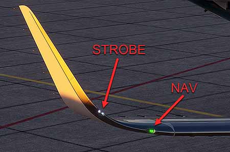 There are dual navigation lights on each wing tip and in the APU tail cone.